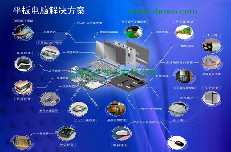 模切和印刷標(biāo)簽產(chǎn)品在電子行業(yè)產(chǎn)品中的使用也極其廣泛,我們就以上述平板電腦解決方案說(shuō)明模切、印刷件在其中的應(yīng)用。