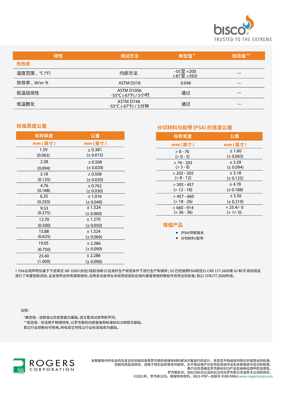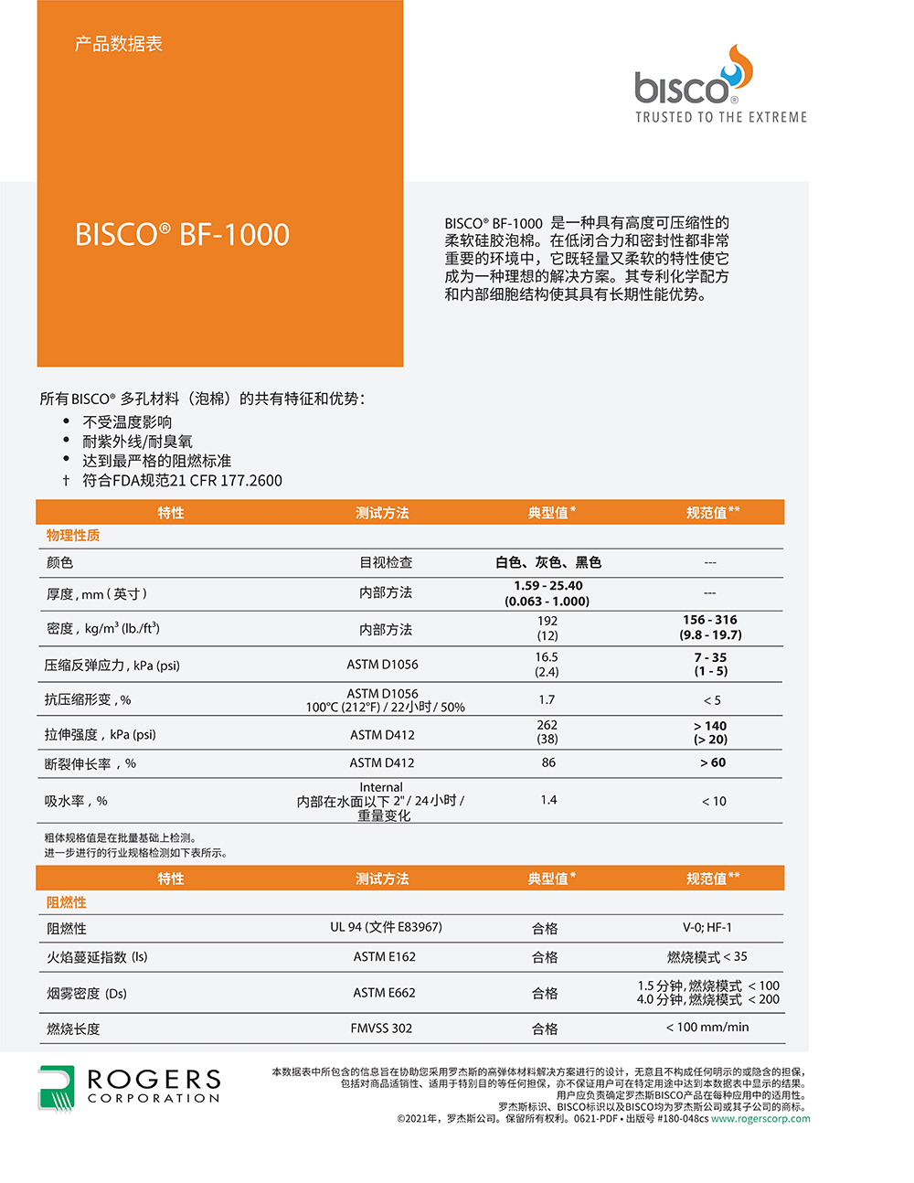 羅杰斯BISCO?  BF-1000 超軟硅膠泡棉