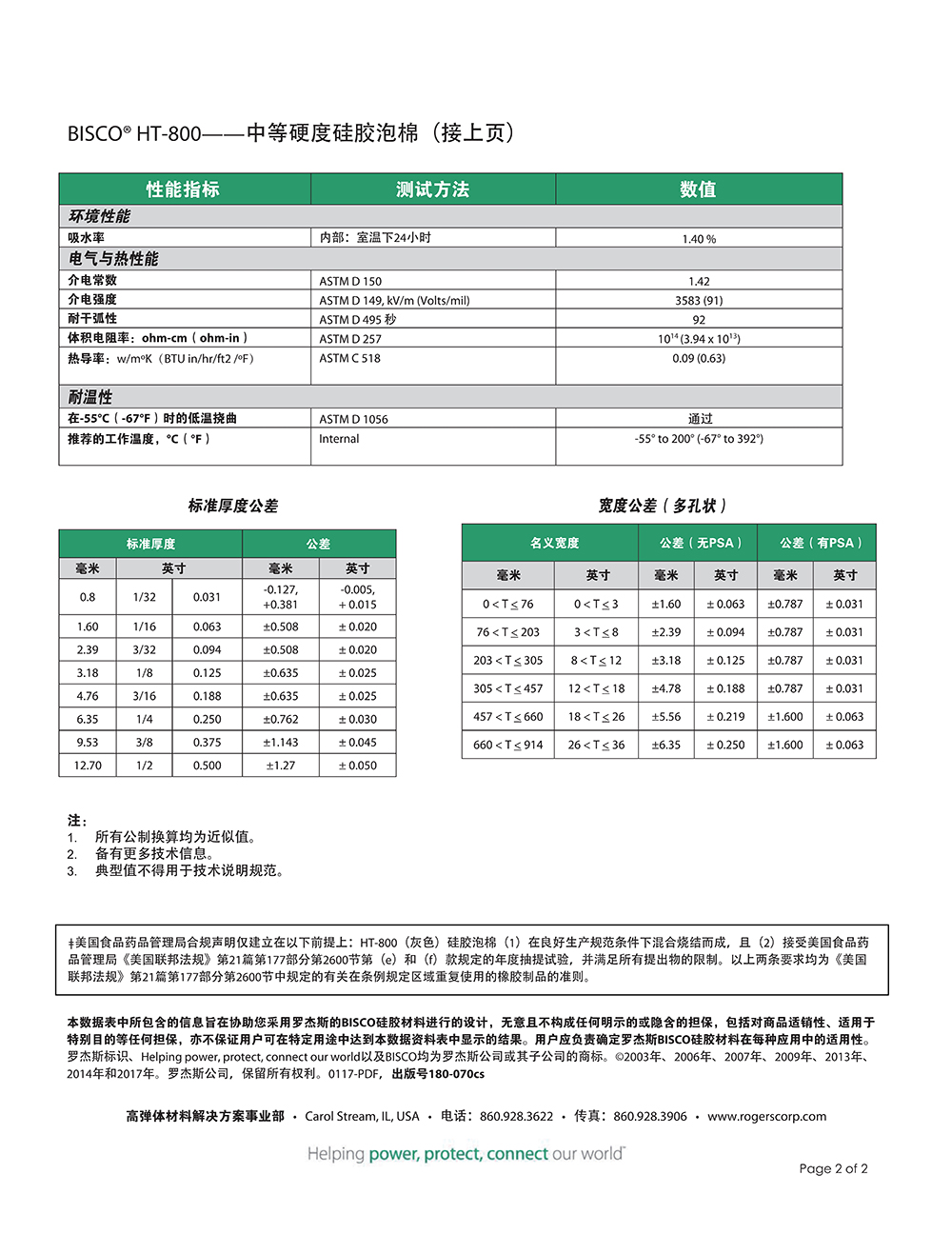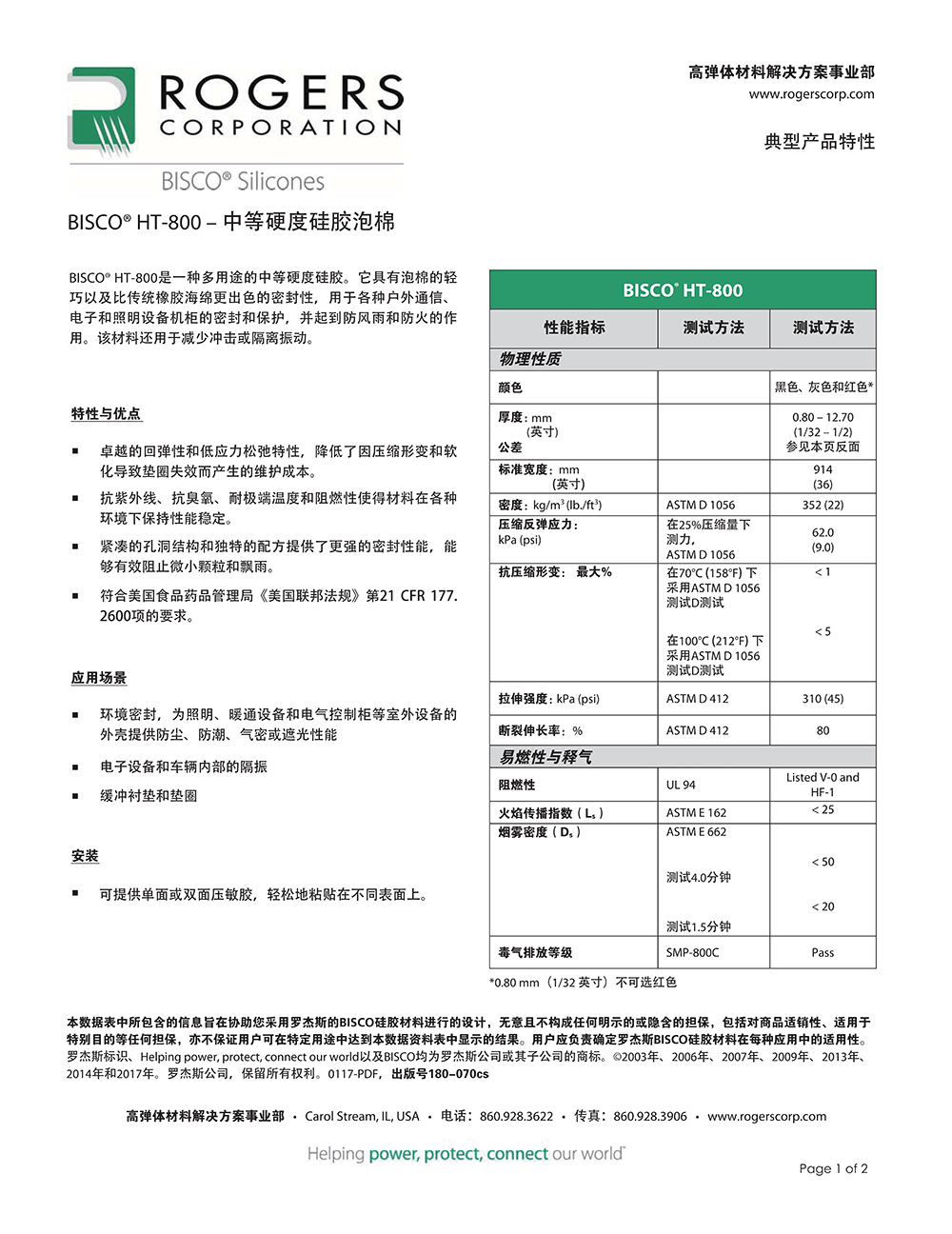 羅杰斯BISCO?  HT-800 中等硬度硅膠泡棉