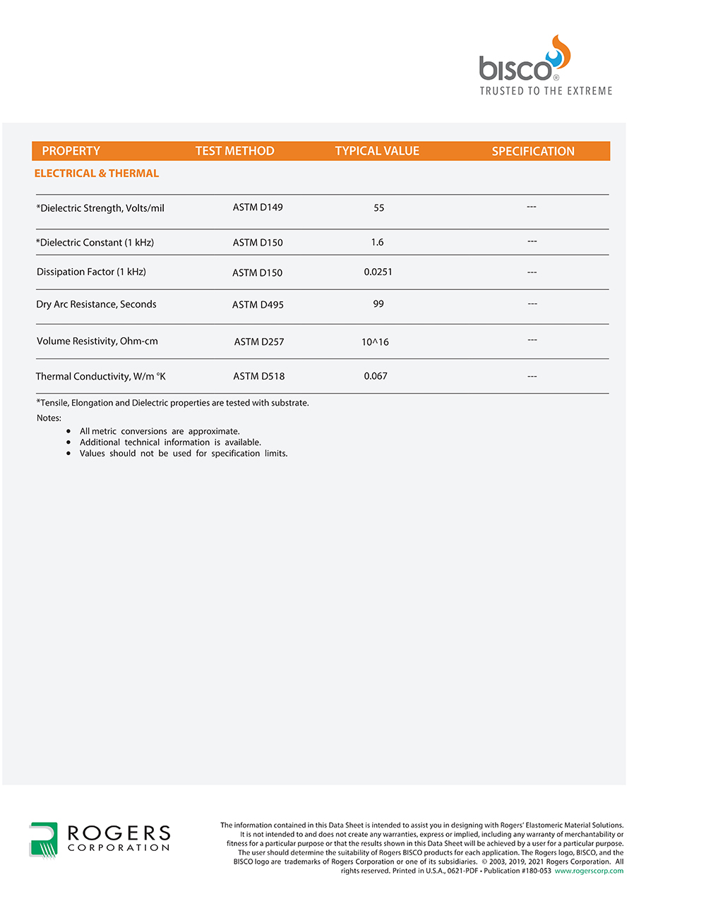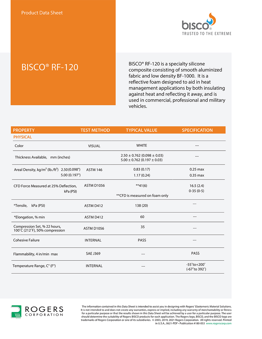 羅杰斯BISCO? RF-120 硅膠熱防護材料