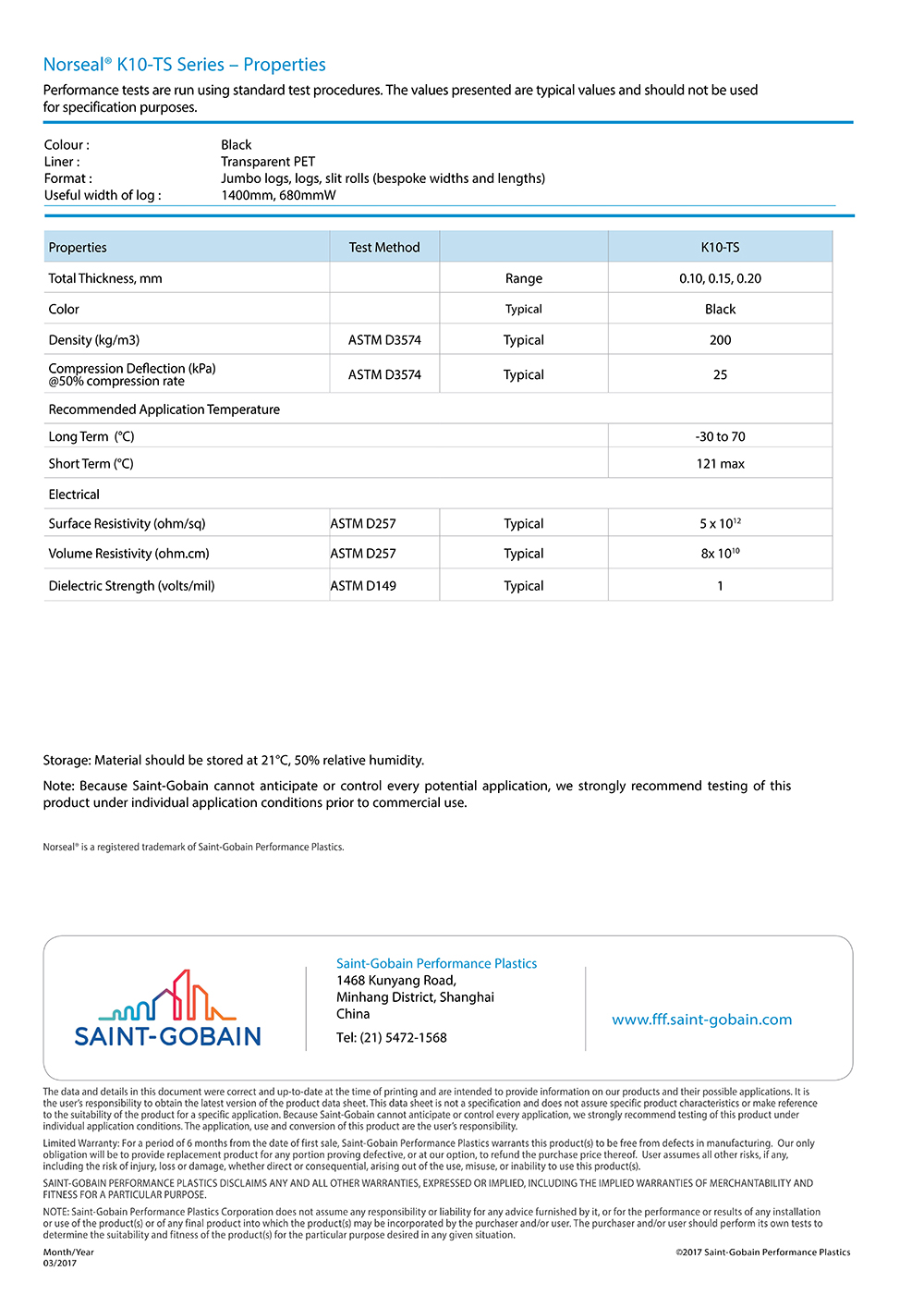 圣戈班Norseal? K10-TS Series – Properties