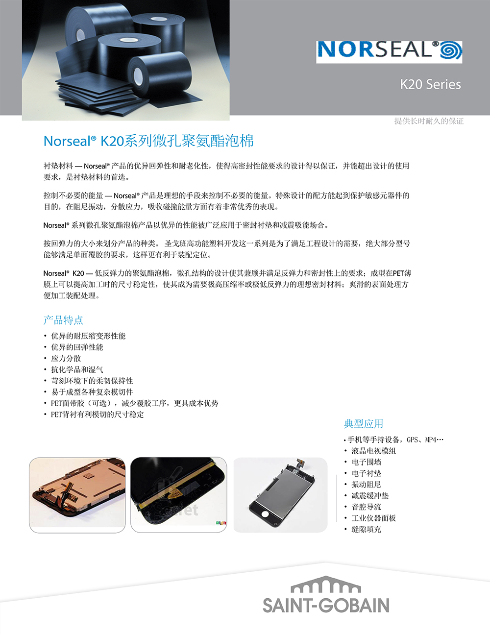 圣戈班Norseal? K20系列微孔聚氨酯泡棉