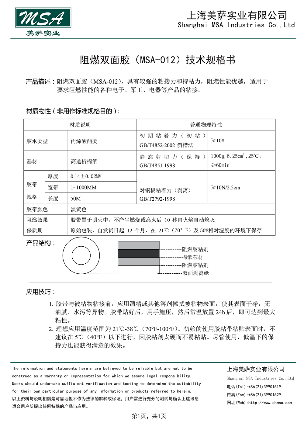 MSA-012 阻燃雙面膠帶